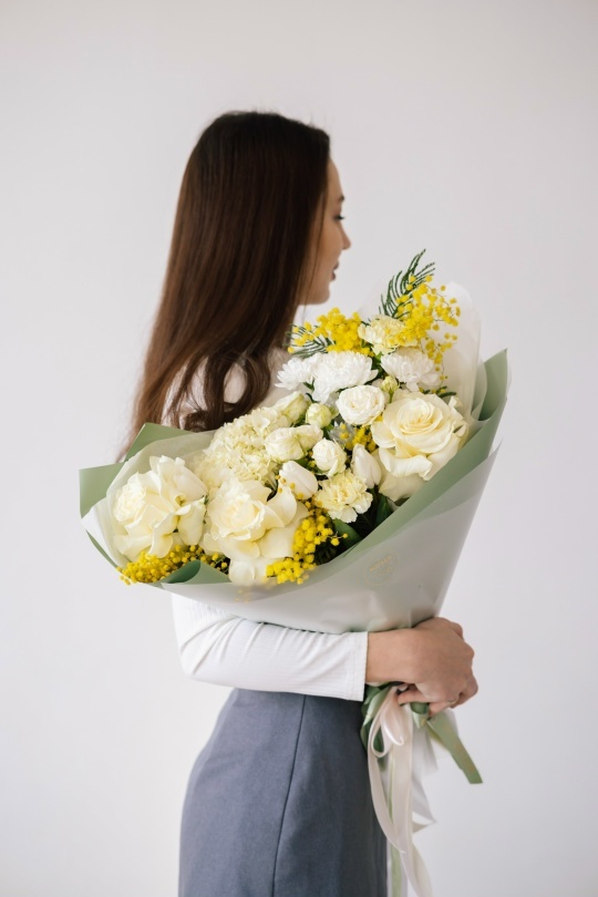 Гортензия, хризантема, роза, роза пионовидная, декор, упаковка