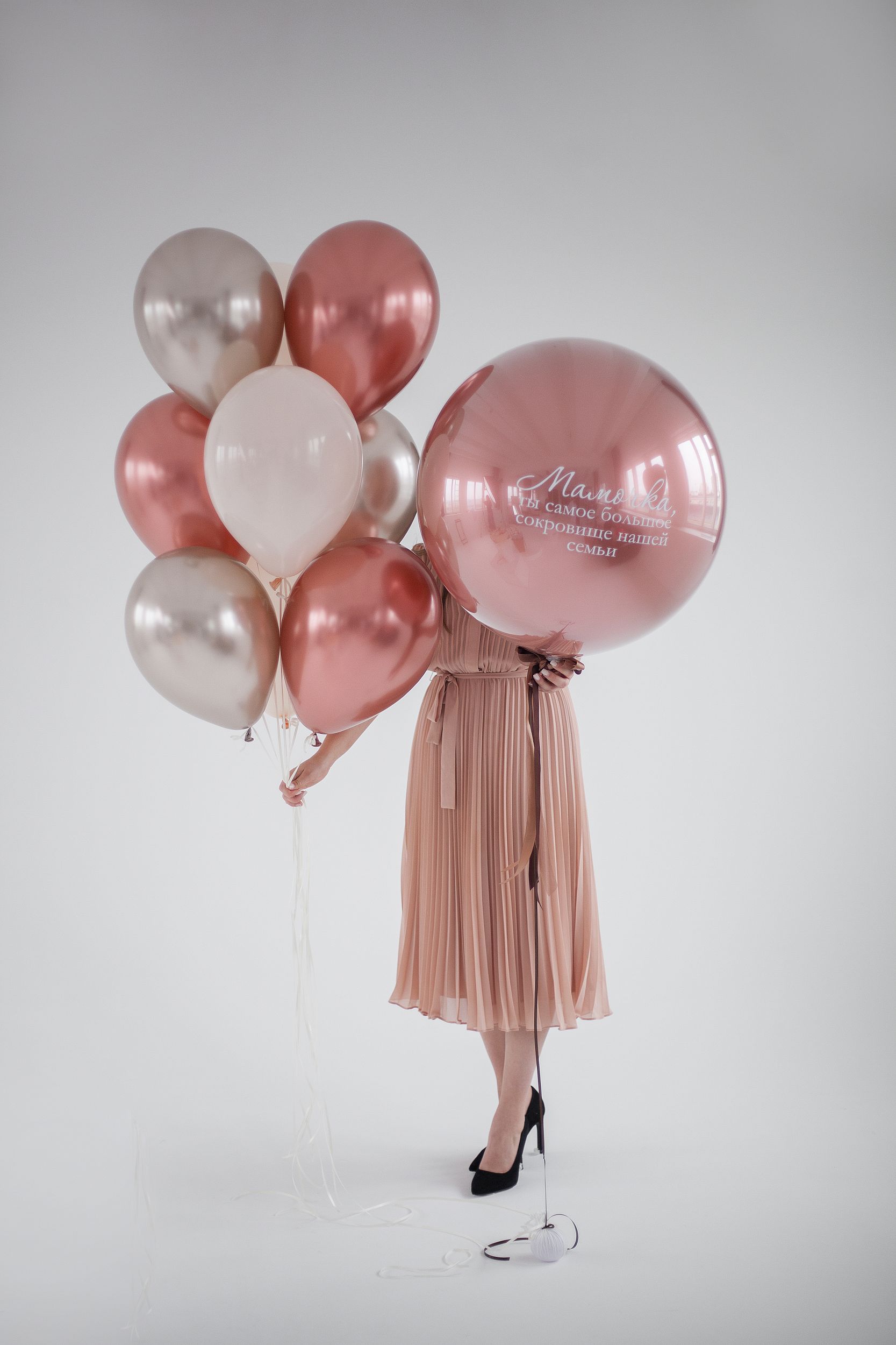 Шар средний с индивидуальной надписью, однотонный 6, кисточки 3.